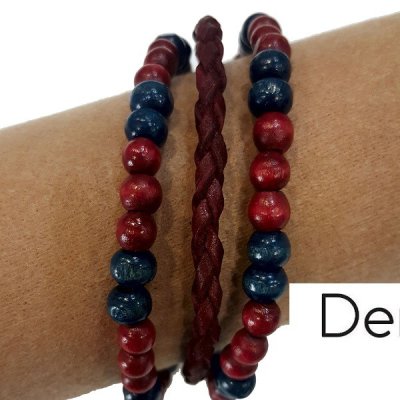 Gerçek Deri Bileklik Örmeli Deritel Boncuklu Bordo Mavi
