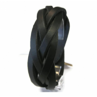Geniş Örgü Gerçek Deri Bileklik Siyah