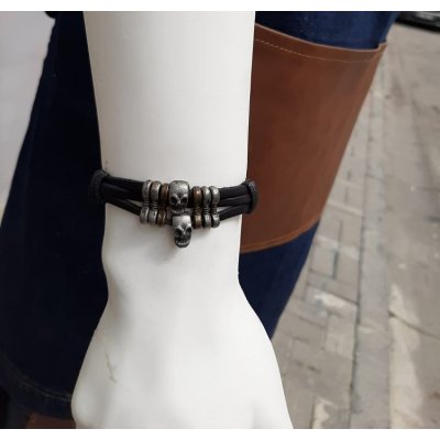 Deritel Erkek Bileklik - Kuru kafa metalli Deri