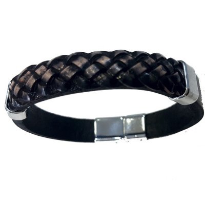 Örmeli Bileklik Siyah Kahverengi Gerçek Deri