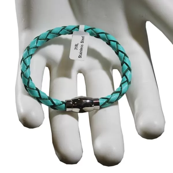 turkuaz renkli deri örme bileklik mıknatıslı çelik metal aksesuarlı kapama özelliği ile deritel ürünlerini güvenle www.deritel.com marketimizde sipariş verebilirsiniz..Siparişleriniz size en hızlı şekilde aynı gün kargo ile sizlere yollanacaktır.