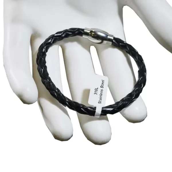 Bileklik Adı : Gerçek Deri Örmeli Mıknatıslı Bileklik Çelik Kaplama Siyah 18.cm