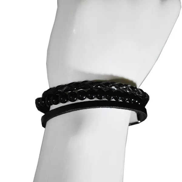 Deritel Hakiki Deri Bileklik Siyah Boncuklu