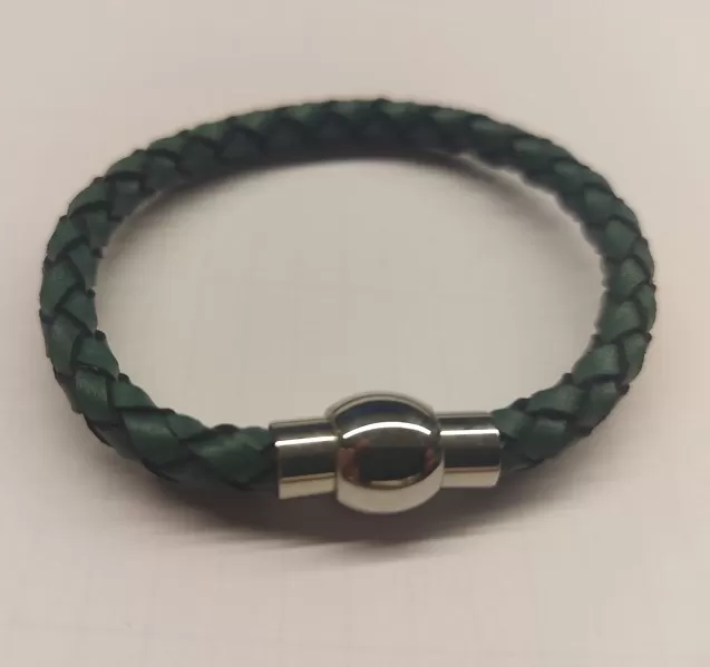 Bileklik Açıklaması : Kaliteli ve Doğal Deri bileklik el emeği ve göz nuru ile üretildi. Kaliteli ve şık üründür. Yeşil renkli el örgüsü deri bileklik şık ve tercih edilen aksesuardır.. Gümüş renkli çelik aksesuar mıknatıslı uçtan kapama ile bilekleri süsleyen harika ürün.