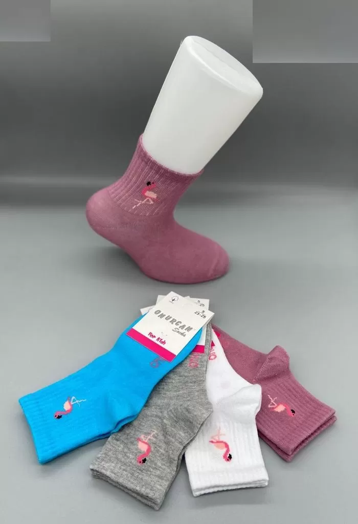 4 Adet Pembe Flamingolu Çocuk Çorap CL-0277